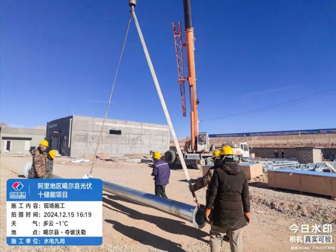 ▲噶爾光伏發(fā)電項(xiàng)目,現(xiàn)場(chǎng)施工人員開展避雷針吊裝作業(yè)。