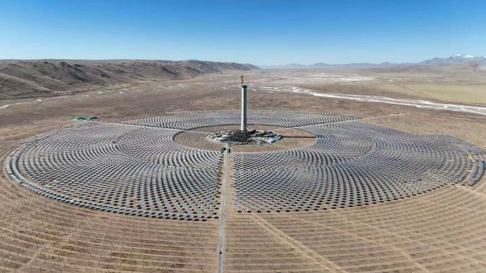 安多土碩光熱項目共配置15927面定日鏡,工人正在緊張有序地進行安裝,計劃于明年3月搭建完畢,塔頂吸熱器擬于明年4月安裝完成。